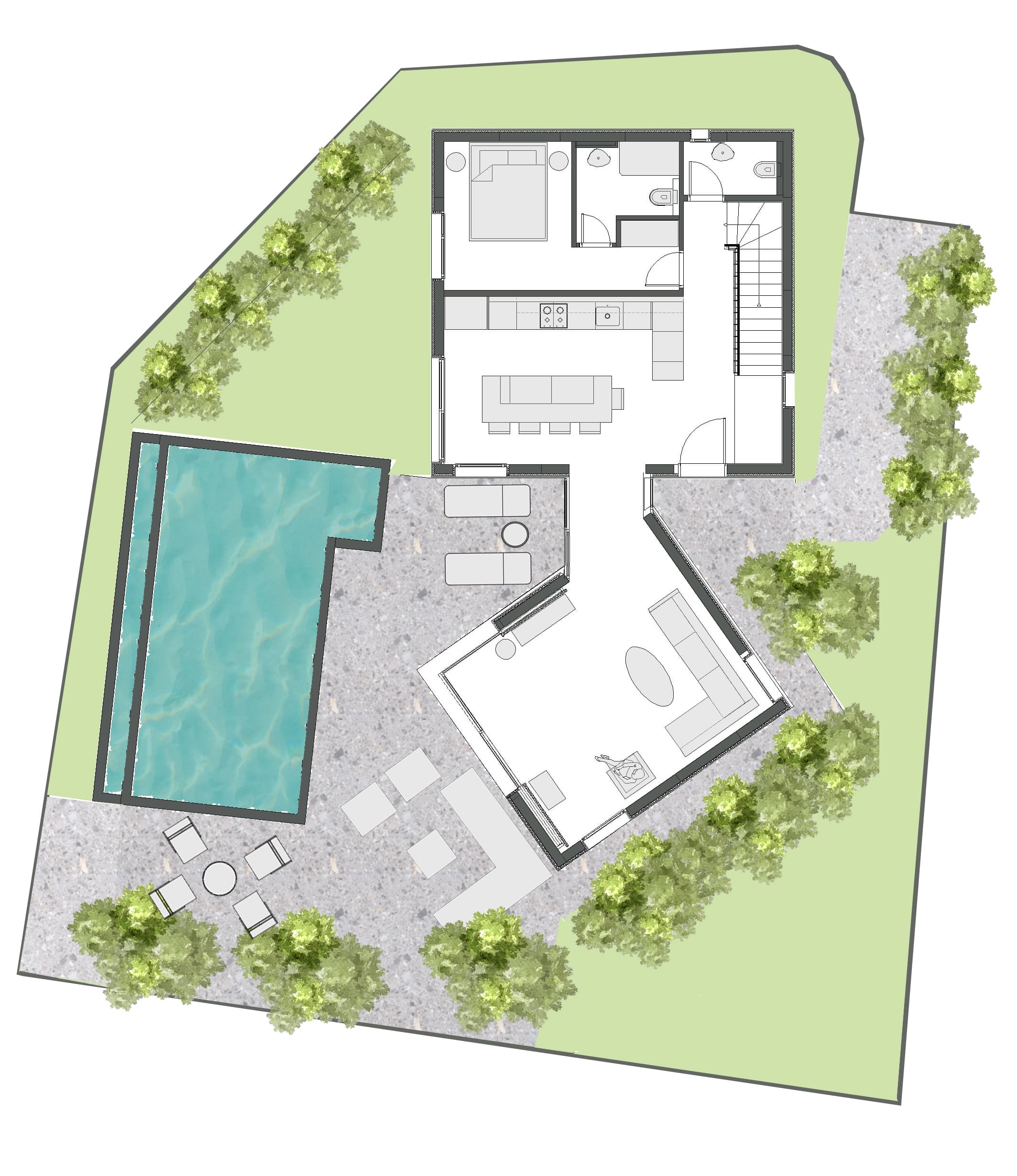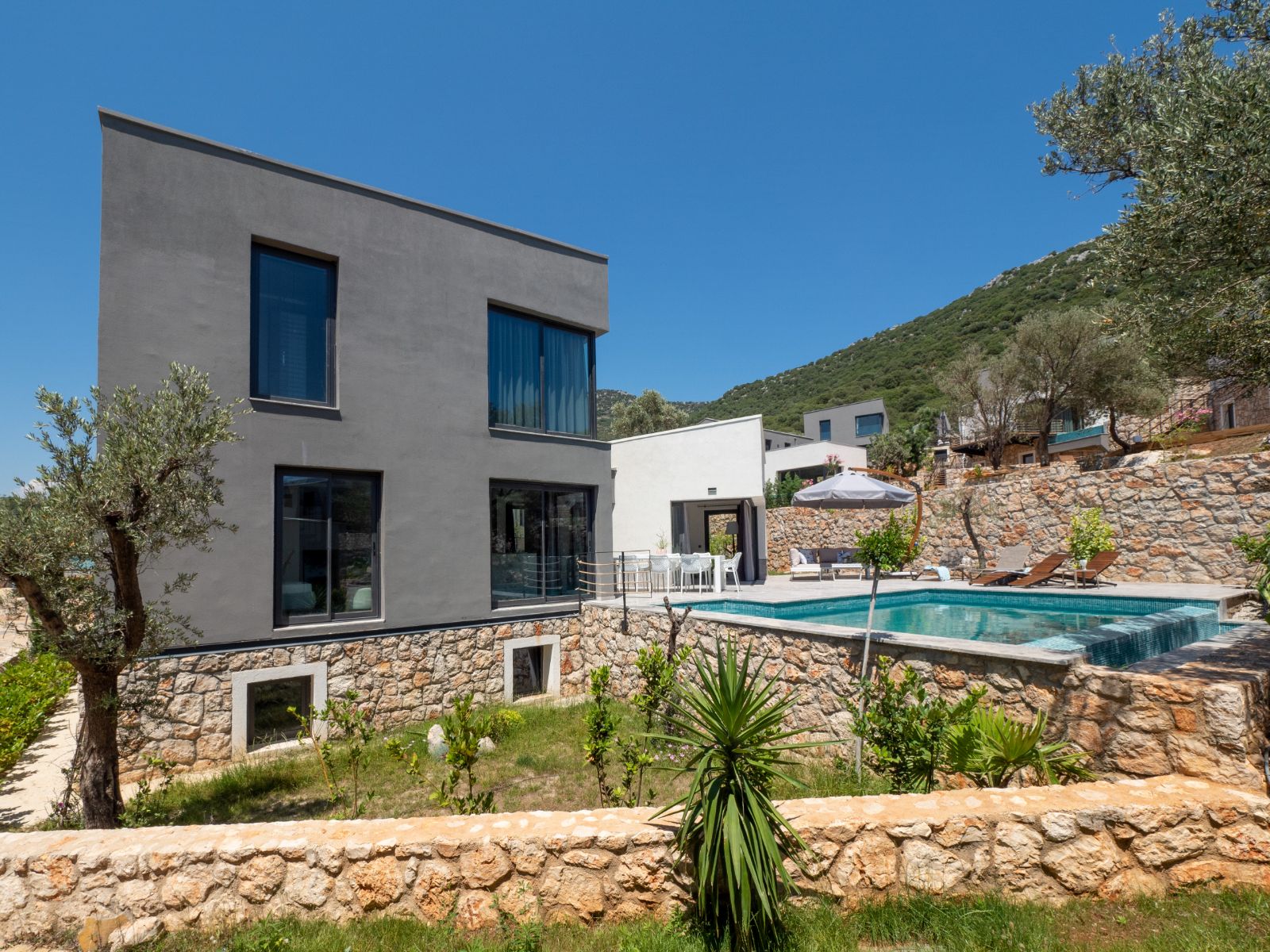 Notos Club has 14 villas and they are positioned to fit the existing olive trees, rock formation and geology. We named each villa after an ancient Lycian town. In addition to the unique features , Notos consists of extensive comfort elemants such as underfloor heating , induction furnace, private wooden deck poolside terraces.