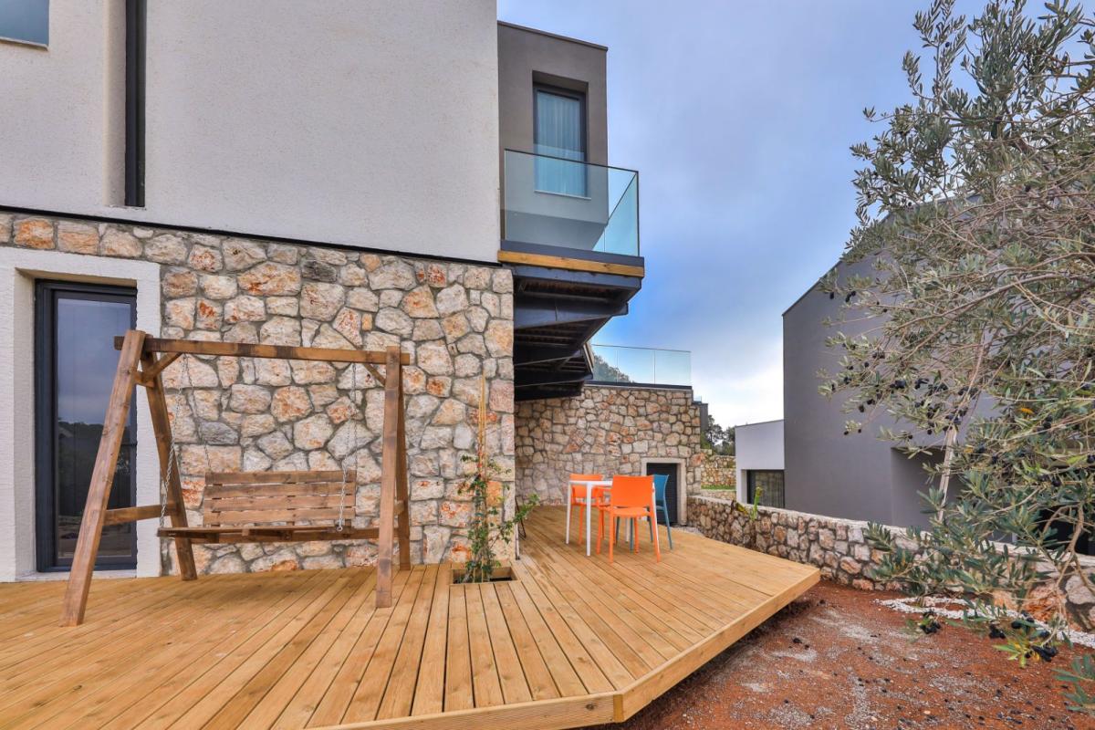 Notos Club has 14 villas and they are positioned to fit the existing olive trees, rock formation and geology. We named each villa after an ancient Lycian town. In addition to the unique features , Notos consists of extensive comfort elemants such as underfloor heating , induction furnace, private wooden deck poolside terraces.